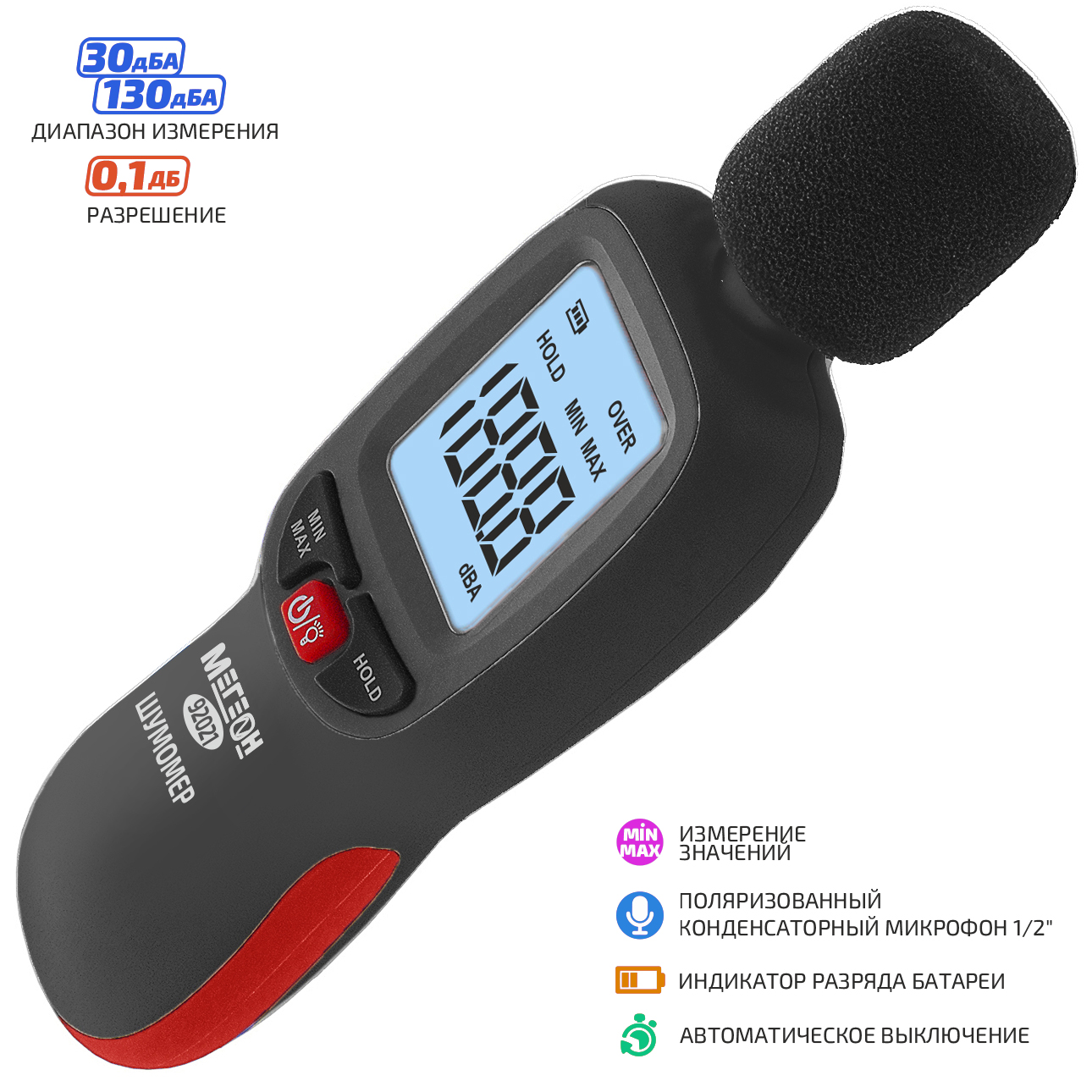 - Диапазон измерения 30…130 дБА