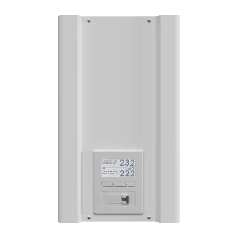 Ключевой особенностью стабилизатора является использование тиристорной схемы коммутации, что обеспечивает мгновенное переключение между ступенями без механического износа и постороннего шума. Это делает работу устройства не только надежной, но и практически бесшумной. Всего предусмотрено 12 ступеней стабилизации, что обеспечивает высокую точность выравнивания напряжения в пределах ±3,5% от номинала, даже при значительных колебаниях входного напряжения.