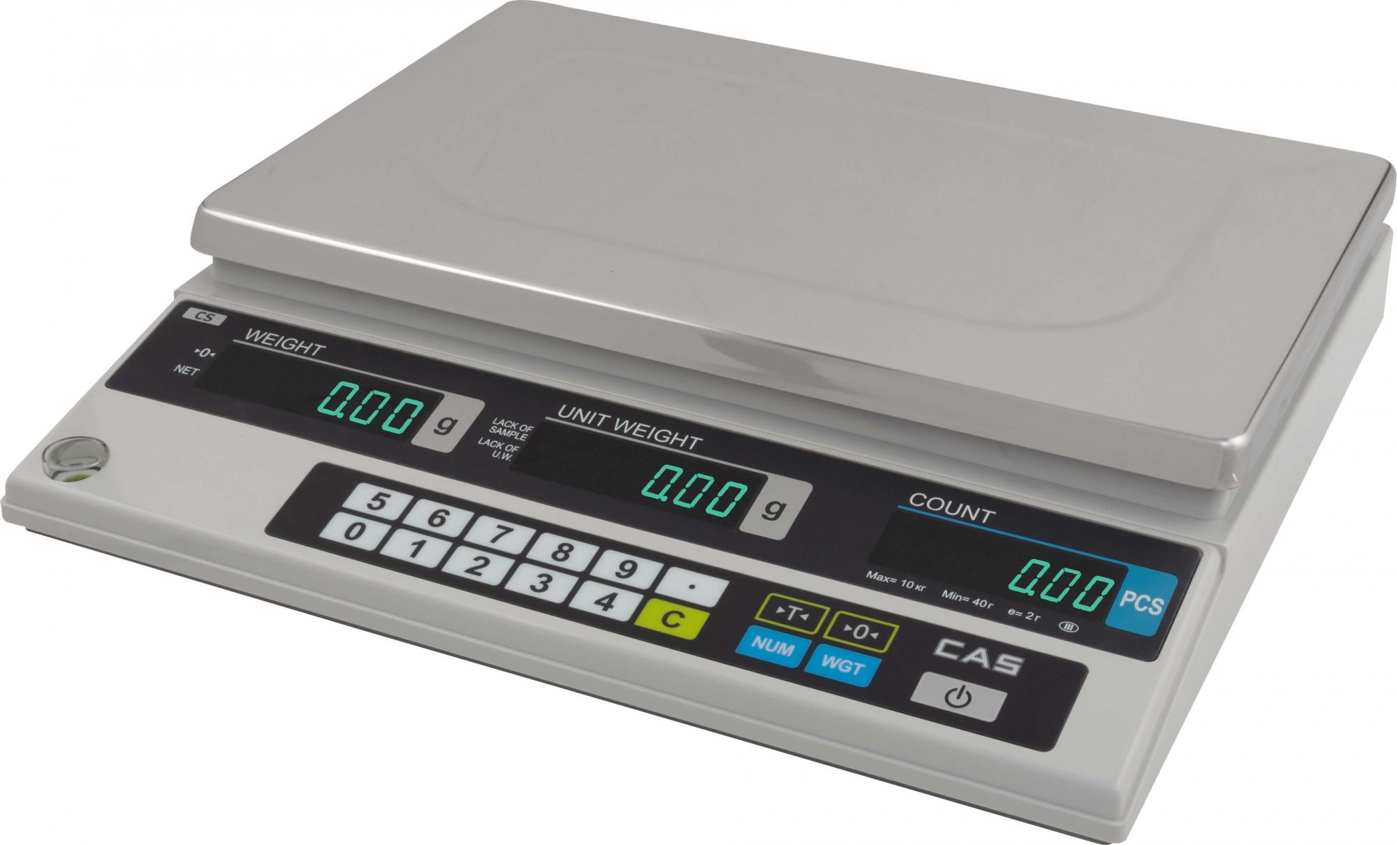 Весы счетные CAS CS-25 — функциональная модель из популярной линейки счетных весов CAS для обычного взвешивания, учета количества одинаковых предметов и измерения штучной массы мелких предметов, деталей, запчастей. Весы просты в использовании, имеют компактные размеры, обладают отличным соотношением цена/качество.